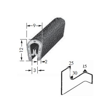Kantenschutzprofil, Plattendicke: 1-3 mm BxH: 9x12 mm schwarz