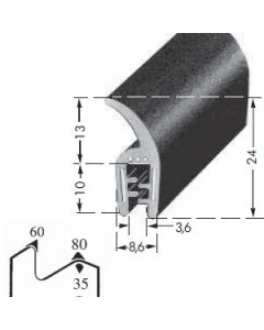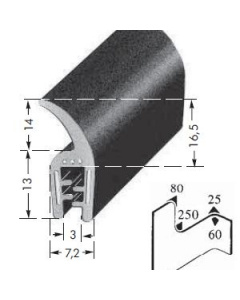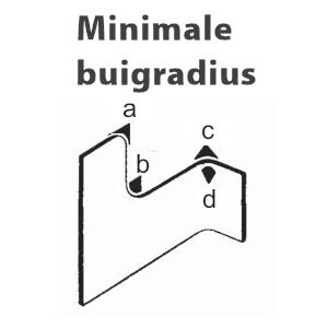 d = kleinstmöglicher Radius an der Innenseite einer Biegung. Dieses Maß ist besonders wichtig, wenn es sich um ein kombiniertes Profil mit einem angehefteten Moosgummi- oder Vollgummiprofil handelt.